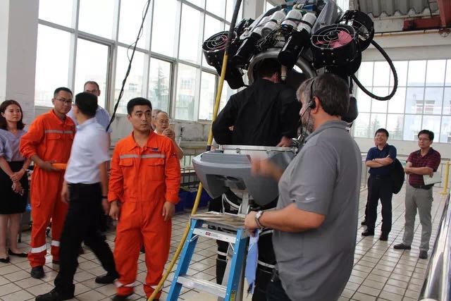 會(huì)后,與會(huì)代表在青島太平洋公司潛水員訓(xùn)練場觀摩了ADS常壓潛水系統(tǒng)的下水訓(xùn)練,身臨其境的感受了設(shè)備入水、水下移動(dòng)、穿纜作業(yè)、水下重物吊掛等環(huán)節(jié),并對(duì)該系統(tǒng)的使用體驗(yàn)給予了高度的評(píng)價(jià)。